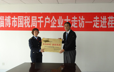 會(huì)上,舉行了授牌儀式,志賀進(jìn)總經(jīng)理從婁局長手中接過了淄博市國稅局頒發(fā)的 “依法納稅 強(qiáng)國惠民” 的牌匾。