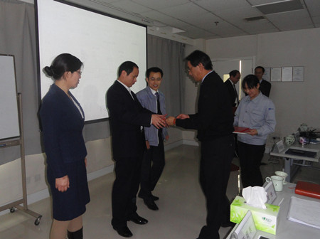 總經(jīng)理志賀進(jìn)先生在會上講話,并為在2011年度營銷工作中業(yè)績突出的3名同志:高文旭、周潔、喬法彬進(jìn)行了頒獎。